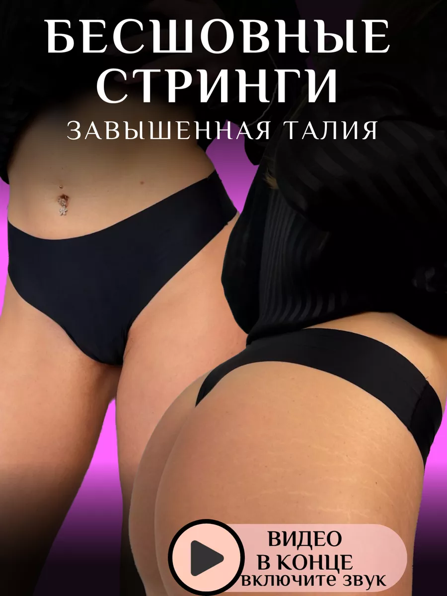 Трусики женские – бесшовные стринги с завышенной талией представлены в классическом черном цвете.