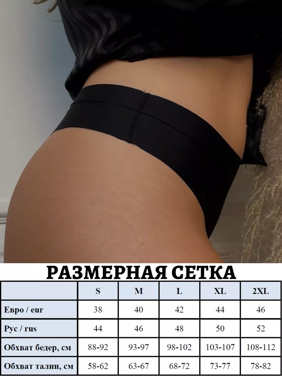 Трусики отлично тянутся, что позволяет посадить их на любую фигуру. Трусики были протестированы на разных типах фигуры, что показало отличную посадку на каждую девушку любого размерного ряда.